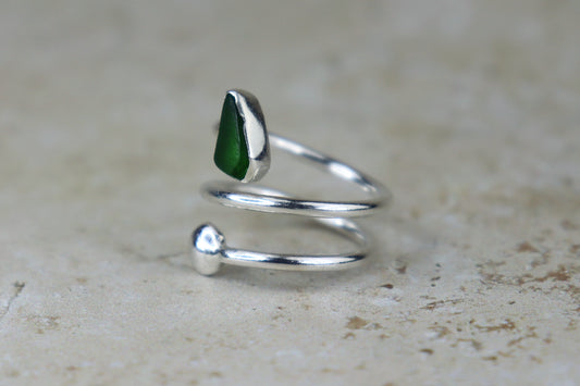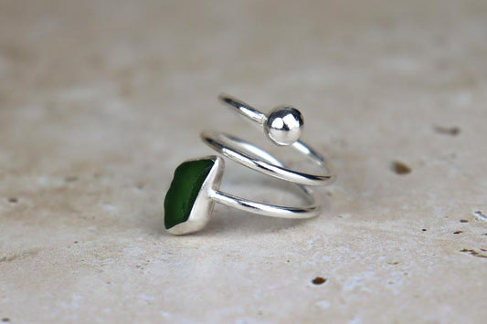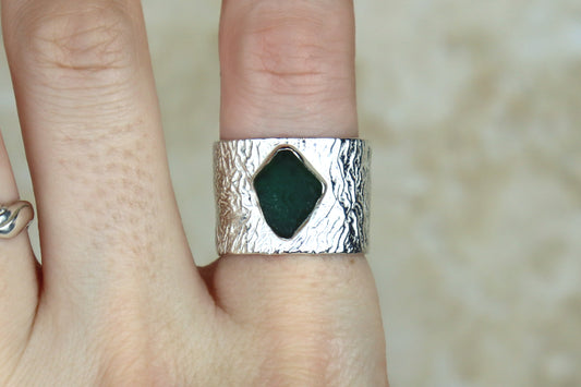 UK Size P/Q Reticulated Welsh Sea Glass Ring