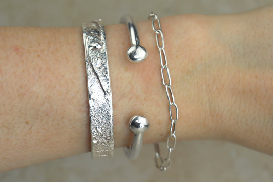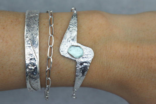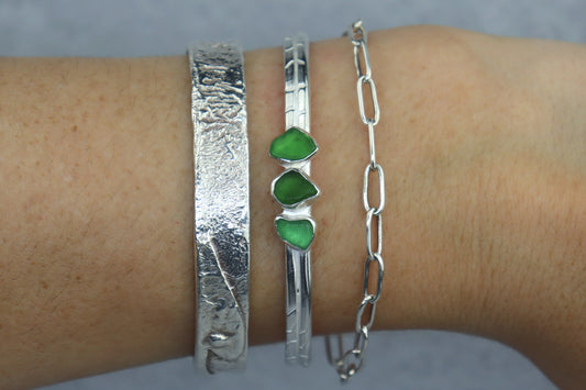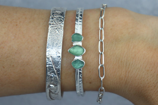 Welsh Sea Glass Textured Sterling Silver Cuff