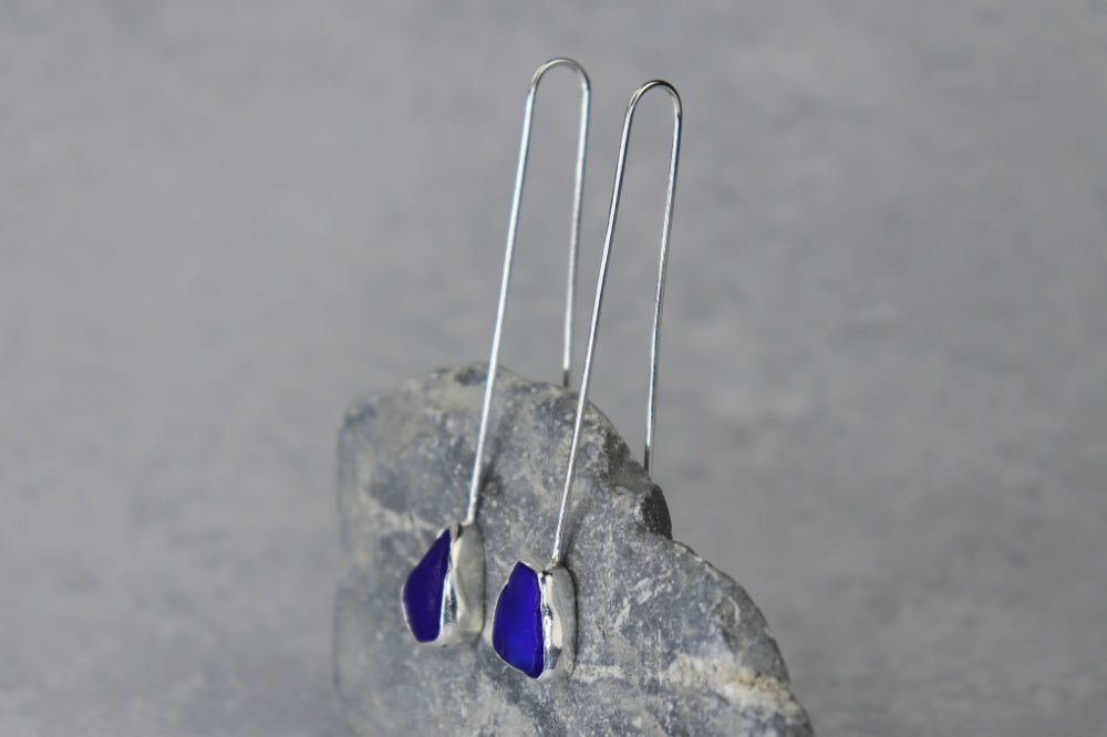 Treasures from the shore, crafted by hand. These earrings were carefully handcrafted in my home studio in Wales, featuring genuine sea glass collected from my local coastline. Each piece of sea glass has been naturally shaped and smoothed by the ocean, making every pair truly unique.