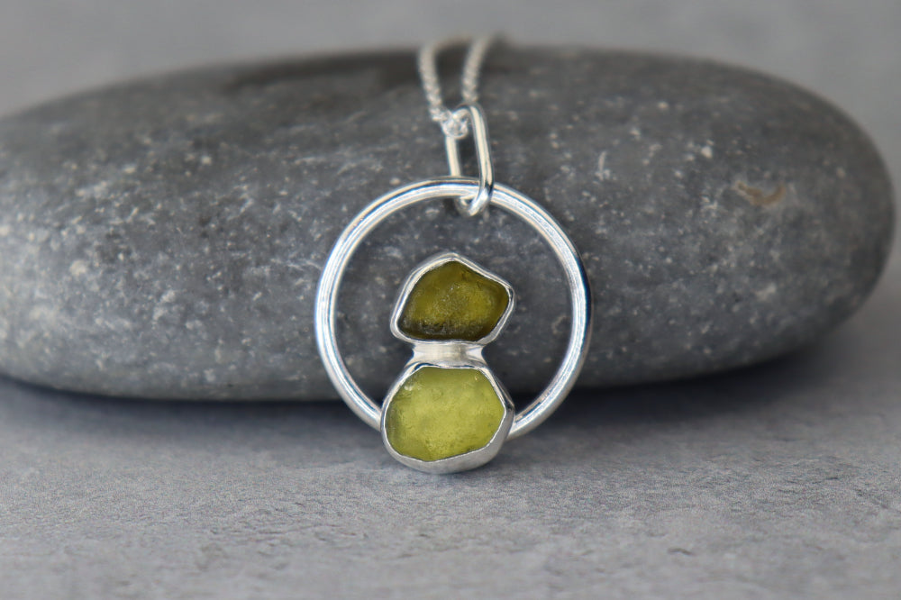 This pendant was carefully handcrafted in my home studio in Wales, featuring genuine sea glass collected from my favourite beach in Penarth. Each piece has been naturally shaped and frosted by the sea over time, making every pendant one of a kind.