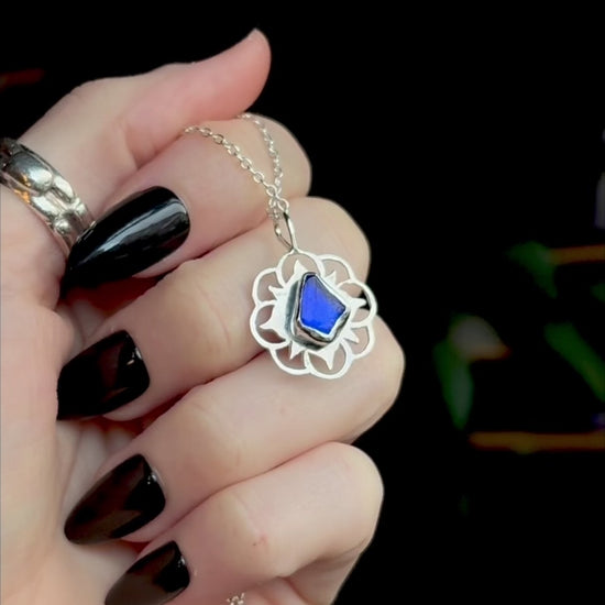 The sea glass is set in a 925 sterling silver setting and comes with an 21-inch sterling silver chain, finished with a handmade hook-and-eye clasp.