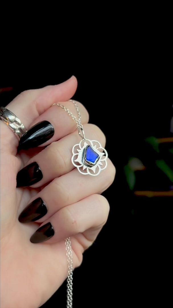 This pendant was carefully handcrafted in my home studio in Wales, featuring genuine sea glass collected from my favourite beach in Penarth. Each piece has been naturally shaped and frosted by the sea over time, making every pendant one of a kind.