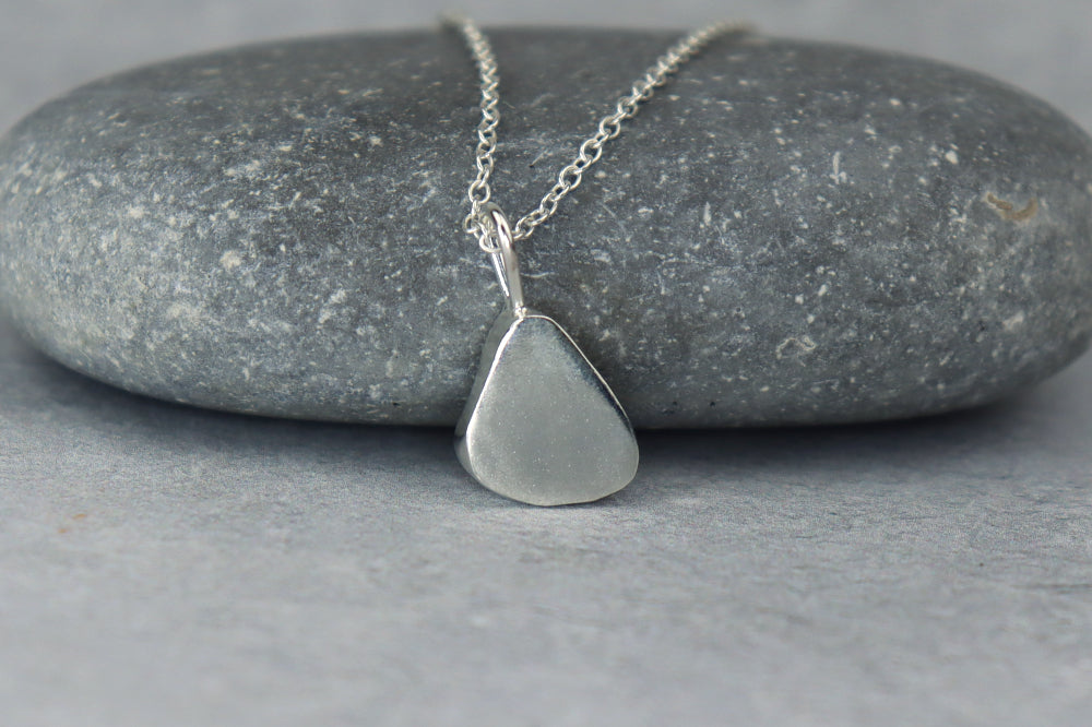 This pendant was carefully handcrafted in my home studio in Wales, featuring genuine sea glass collected from my favourite beach in Penarth. Each piece has been naturally shaped and frosted by the sea over time, making every pendant one of a kind.