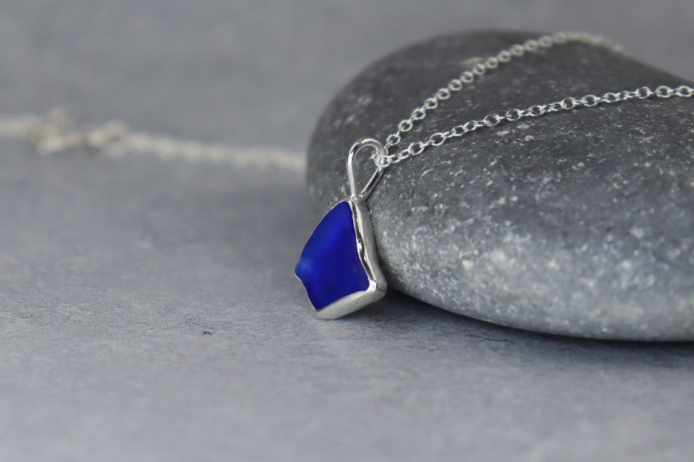 This pendant was carefully handcrafted in my home studio in Wales, featuring genuine sea glass collected from my favourite beach in Penarth. Each piece has been naturally shaped and frosted by the sea over time, making every pendant one of a kind.