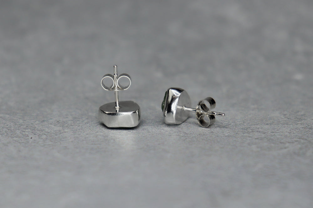 The studs are made entirely from 925 sterling silver and adorned with sea glass gems, carrying a little piece of the sea with you wherever you go. Approximate dimensions: 1cm long × 0.8cm wide × 0.3cm thick